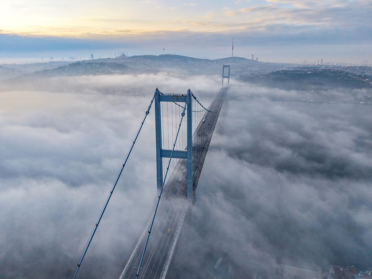 İstanbul’da sabah saatlerinde etkili olan yoğun sis, 15 Temmuz Şehitler Köprüsü üzerinde mest eden görüntüler oluşturdu. Gün doğumuyla birlikte sisin arasından yükselen köprü silueti görenleri mest etti.